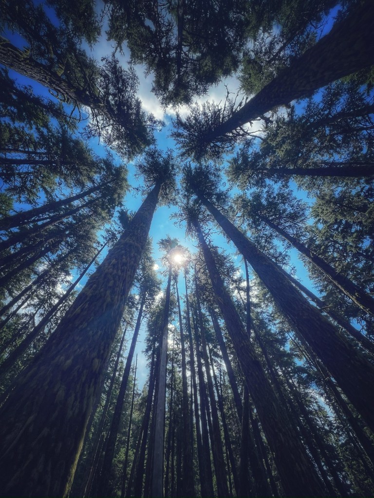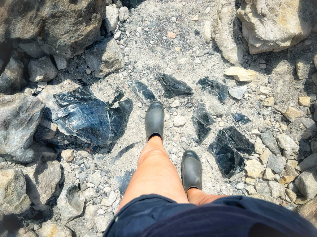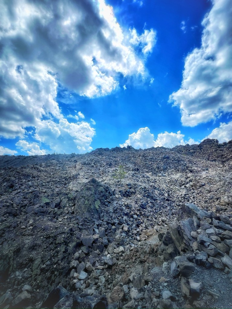Next, we made our way to the Big Obsidian Flow, a stunning sight that had previously captivated us from the summit of Little Crater. Here, we embarked on a hike along a trail glittering with black glass, bringing us up close to the crater’s youngest feature, which last erupted with flowing lava just 1,300 years ago!